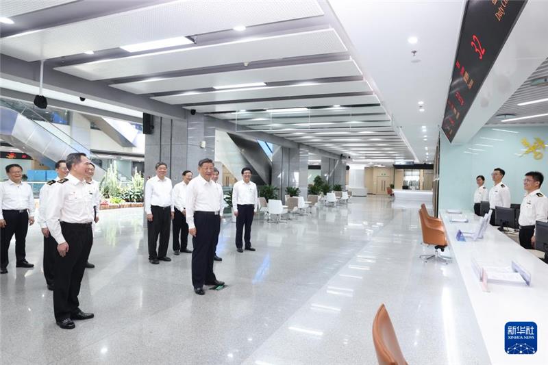 10月15日至16日,中共中央总书记、国家主席、中央军委主席习近平在福建考察。这是16日上午,习近平在中国(福建)自由贸易试验区厦门片区考察时,同综合服务大厅窗口工作人员亲切交流。新华社记者 燕雁 摄