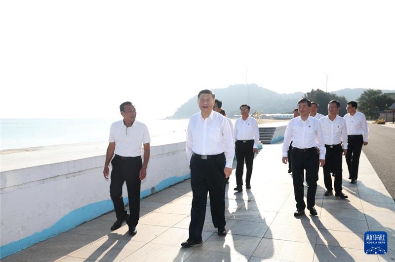 10月15日至16日,中共中央总书记、国家主席、中央军委主席习近平在福建考察。这是15日下午,习近平在漳州市东山县陈城镇澳角村考察时,步行察看澳角湾海域环境和村容村貌。新华社记者 谢环驰 摄